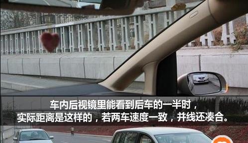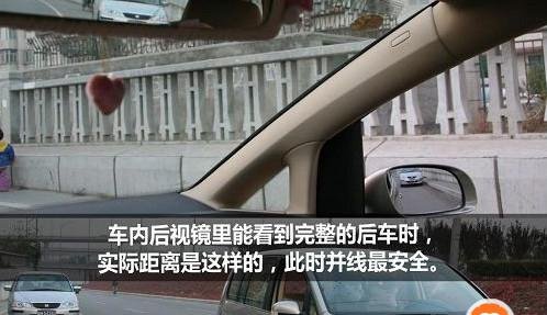 第一种状态:当后车的身影,完整地出现在后视镜里,表示两车距离较远,此时并线最安全。