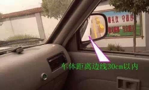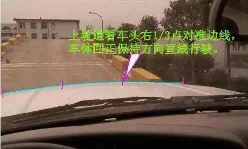 1、挂一档、打右转向灯,车体向右靠,观察右后视镜。 当车体右侧距离 6线30cm以内时,回正方向轻踩油门保持在1500转直线行驶;